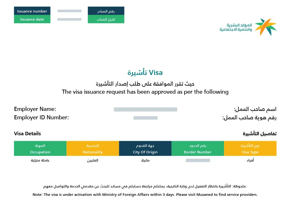 الوثائق المتطلبة لإصدار تأشيرة الإستقدام من مساند